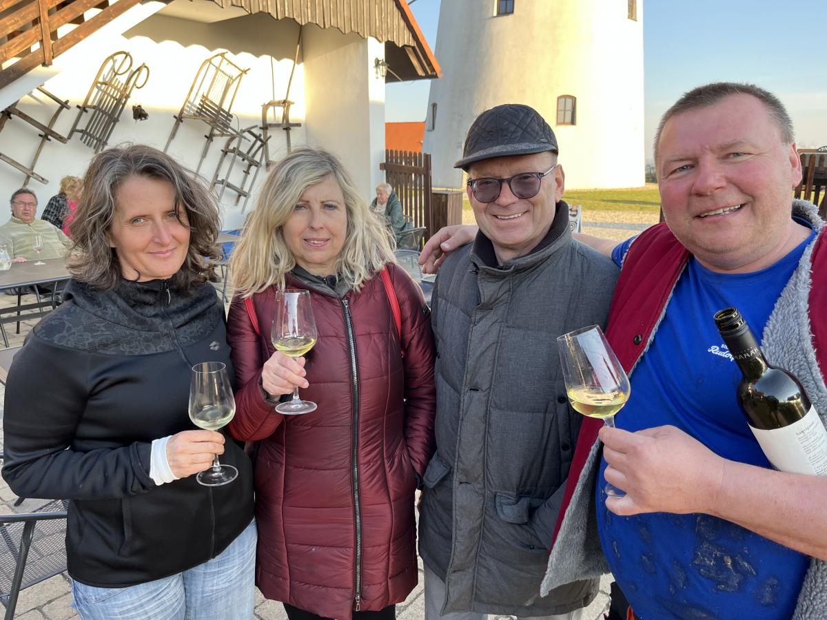 The programme started with a tasting of genuine Moravian slivovitz, but the main attraction was a 230 kg pig, from which experienced butchers were preparing slaughter specialities all day. Everyone looked forward to cooked pig's head with grated apple and horseradish and other specialities such as liver sausages, blood sausages, head cheese and greaves. There was also blood soup and tasting directly from the cauldron. A local accordionist played throughout the day to make the relaxed atmosphere even better and the sommelier, whose selection pleased the most demanding guests, took care of filling our guests' glasses. Guests could then take part in a guided tour of the Bukovanský mlýn area and visit the mill, which also serves as a lookout tower. Thanks to the sunny weather, there were wonderful panoramic views of the region, which were worth it.