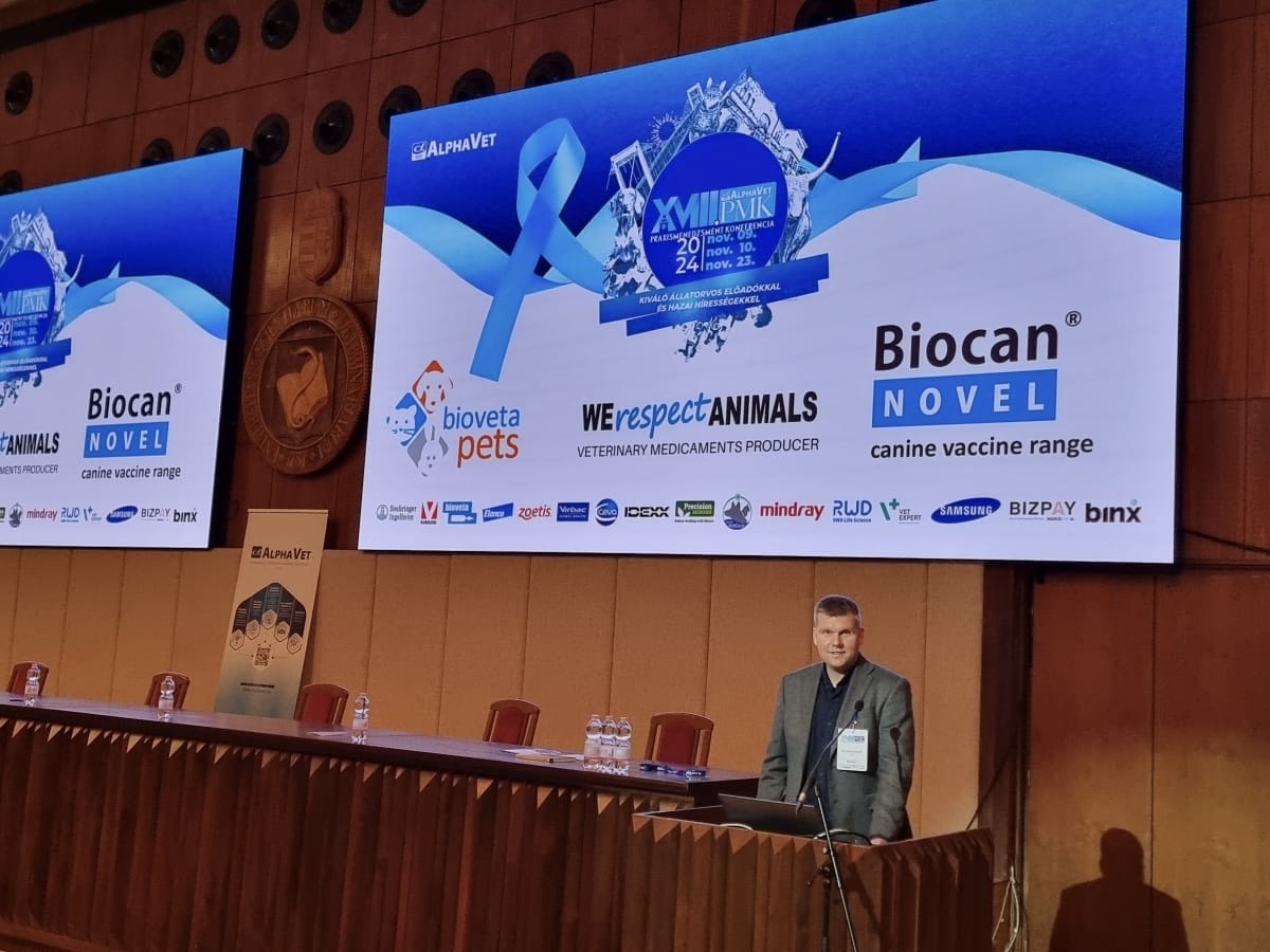 Bioveta representatives participated in and spoke at the annual XVIII Praxismenedzsment Conference (PMK) held at the University of Veterinary Medicine in Budapest. More than 800 veterinarians attended this meeting; the conference was hosted by ALPHAVET, a distribution company. On the conference day, 23 November 2024, the participants were offered 6 parallel program blocks that took place in separate halls.