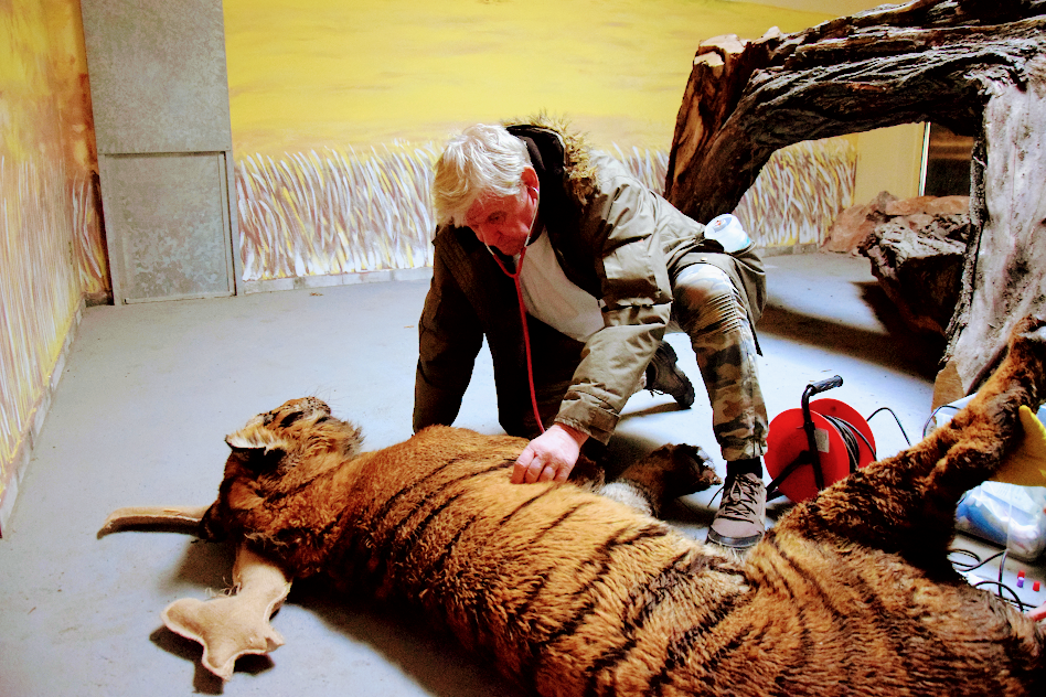 Finally, I would like to thank the entire Bioveta team for their cooperation in the production and supply of products for the Polish market. In addition to PET breeders, the products are now used in Poland by both small farmers and the largest producers of pork and beef. The Odyssey of successfully rescued 9 tigers is just a shard of the important work we are doing together. You can see the result in the photo where Dr. Przybylski examines the male Aqua shortly after being transferred from the Polish-Belarusian border. The video shows Aqua in his Spanish quarantine and the next video captures Aqua after being placed in his enclosure.