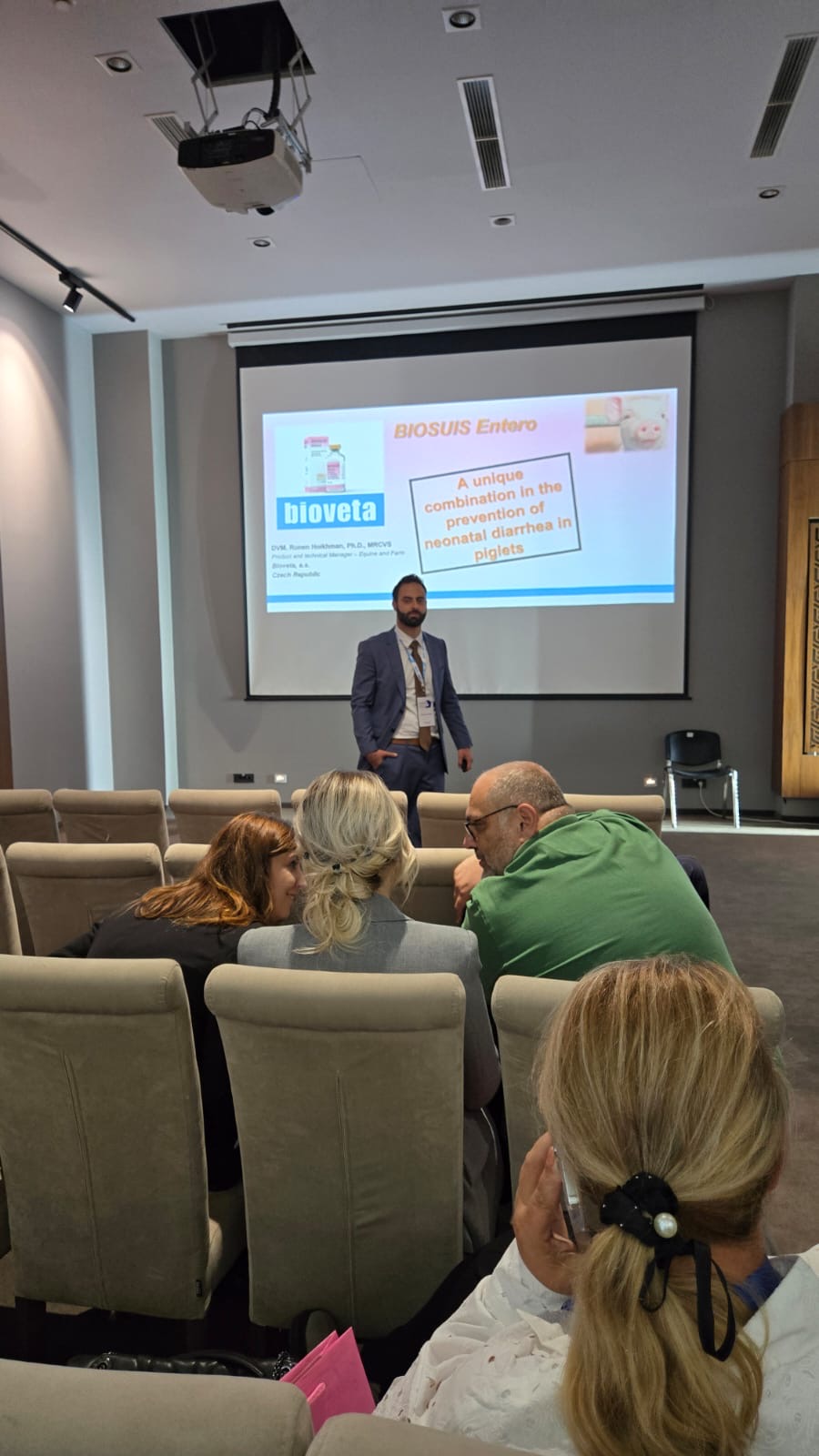 DVM. Ronen Hoikhman, Ph.D., MRCVS, Product Manager, presented the most effective solution from a practical point of view, the use of the polyvalent vaccine with a unique composition, Biosuis Entero, which, by immunizing sows in the last period of gestation, manages to transmit a sufficient titer of antibodies, to reduce both the occurrence of neonatal diarrhea and the infectious pressure in the sow herd.