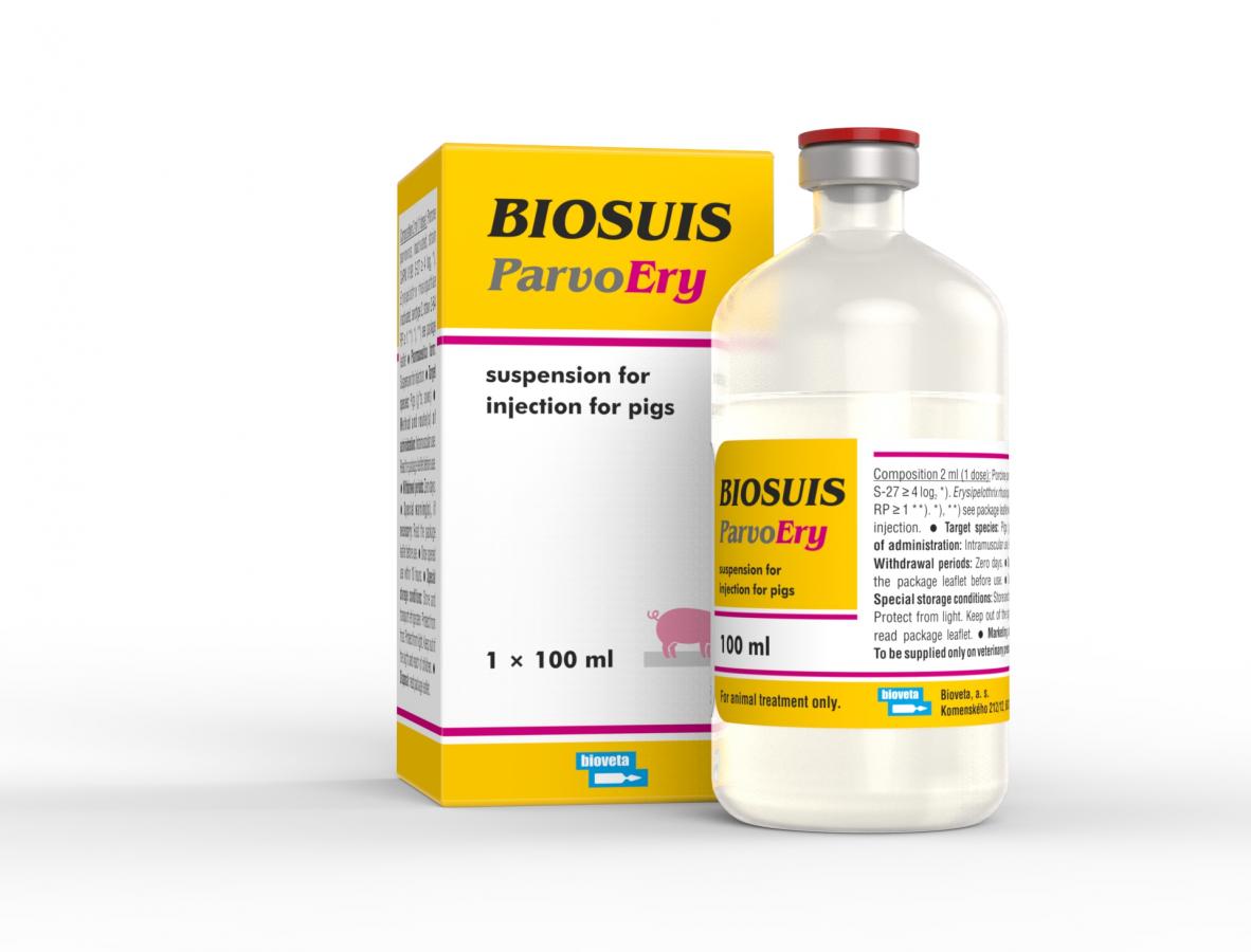 Primary vaccination – from 6 months of age 2 vaccination doses in the period of 6 weeks and 3 weeks before mating or insemination. In case of previous vaccination against parvovirus and erysipelas of pigs with monovalent vaccines from Bioveta, a.s. production, if available (administration of 1 vaccination dose against erysipelas from 8 weeks of age and administration of 1 vaccination dose against porcine parvovirus 6 weeks before mating or insemination), one vaccination dose 3 weeks before mating or insemination is sufficient.