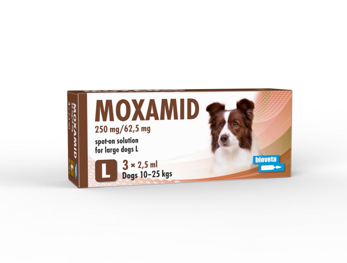 Homepage Products Veterinary products Moxamid 250 mg/62,5 mg spot-on solution for large dogs L